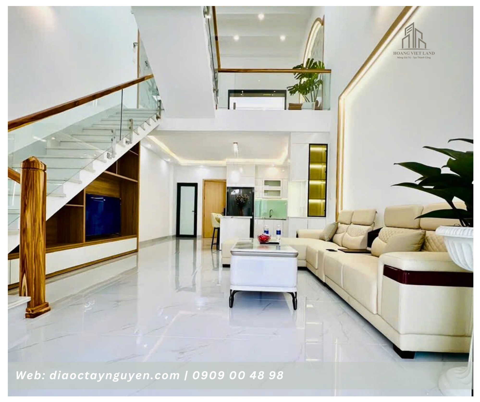 Nếu bạn đang tìm một căn nhà phố trung tâm vừa ở sang, vừa thuận tiện công việc, đây là lựa chọn hiếm. Căn mê lệch hiện đại trên trục Thăng Long có DT 5x19m, nở hậu 8m, thổ cư 100%, full nội thất cao cấp, bố trí 3PN – WC khép kín, gara ô tô. Vị trí ngay sau lưng Tỉnh uỷ, nhìn về Đại lộ Đông–Tây & hồ Ea Tam, vài bước tới đô thị EcoPalace. Giá chào 5.1 tỷ – tốt để chốt trong hôm nay.